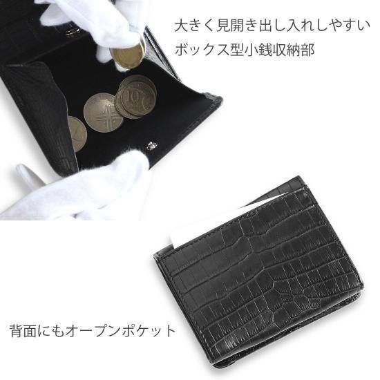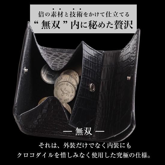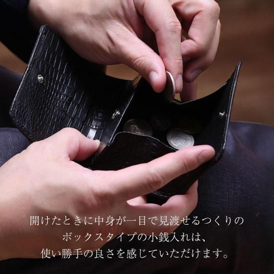 備考 内面もクロコダイルを使用した無双仕立、大きく見開くボックス型小銭入れ